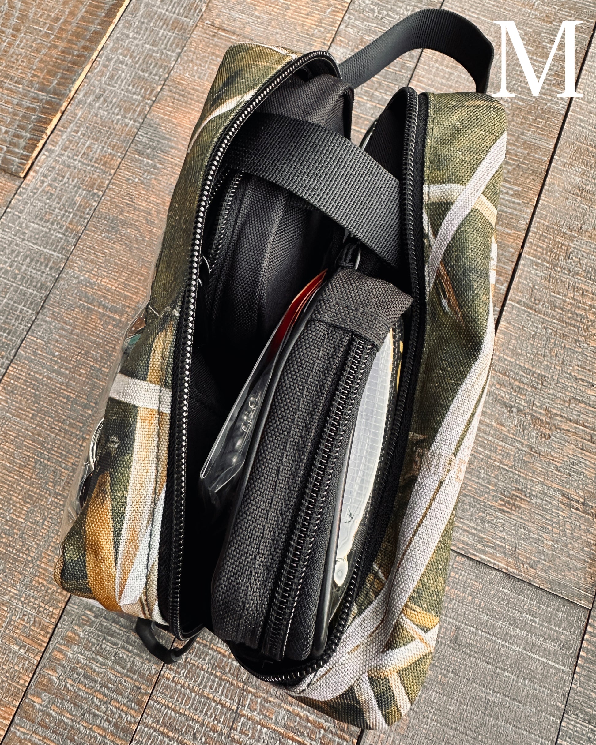 S / Mの2サイズ、各ブラック&カモフラージュで計4つがラインナップ。
